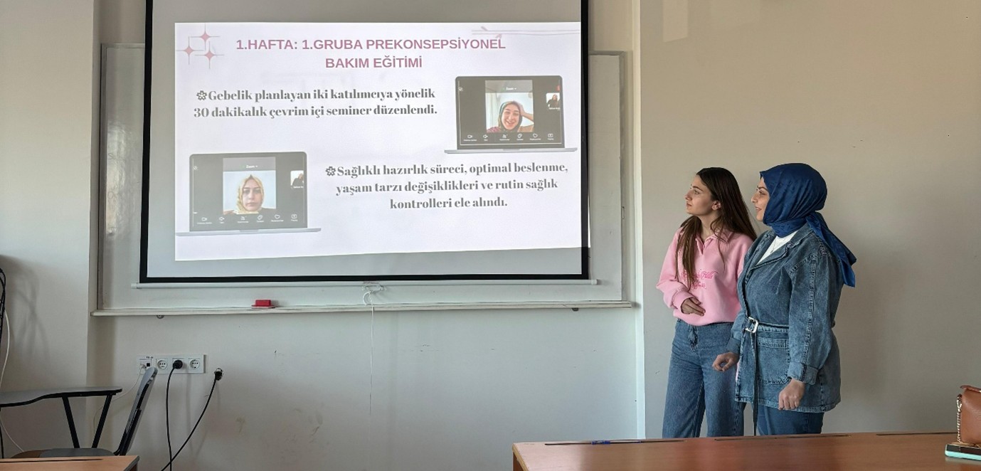 EE349 Kodlu Topluma Hizmet Uygulamaları Dersi – Grup Etkinlikleri kapsamında, danışmanlığını Dr. Öğr. Üyesi Esra Karataş Okyay ve Dr. Öğr. Üyesi Semra Pınar’ın yürüttüğü etkinlik çerçevesinde, gebelik planlayan kadınlara yönelik olarak dijital ortamda bireysel danışmanlık verilmiştir. Katılımcıların merak ettikleri sorular yanıtlanmış, prekonsepsiyonel eğitim öncesi ve sonrası anket formları uygulanarak değerlendirme yapılmıştır.