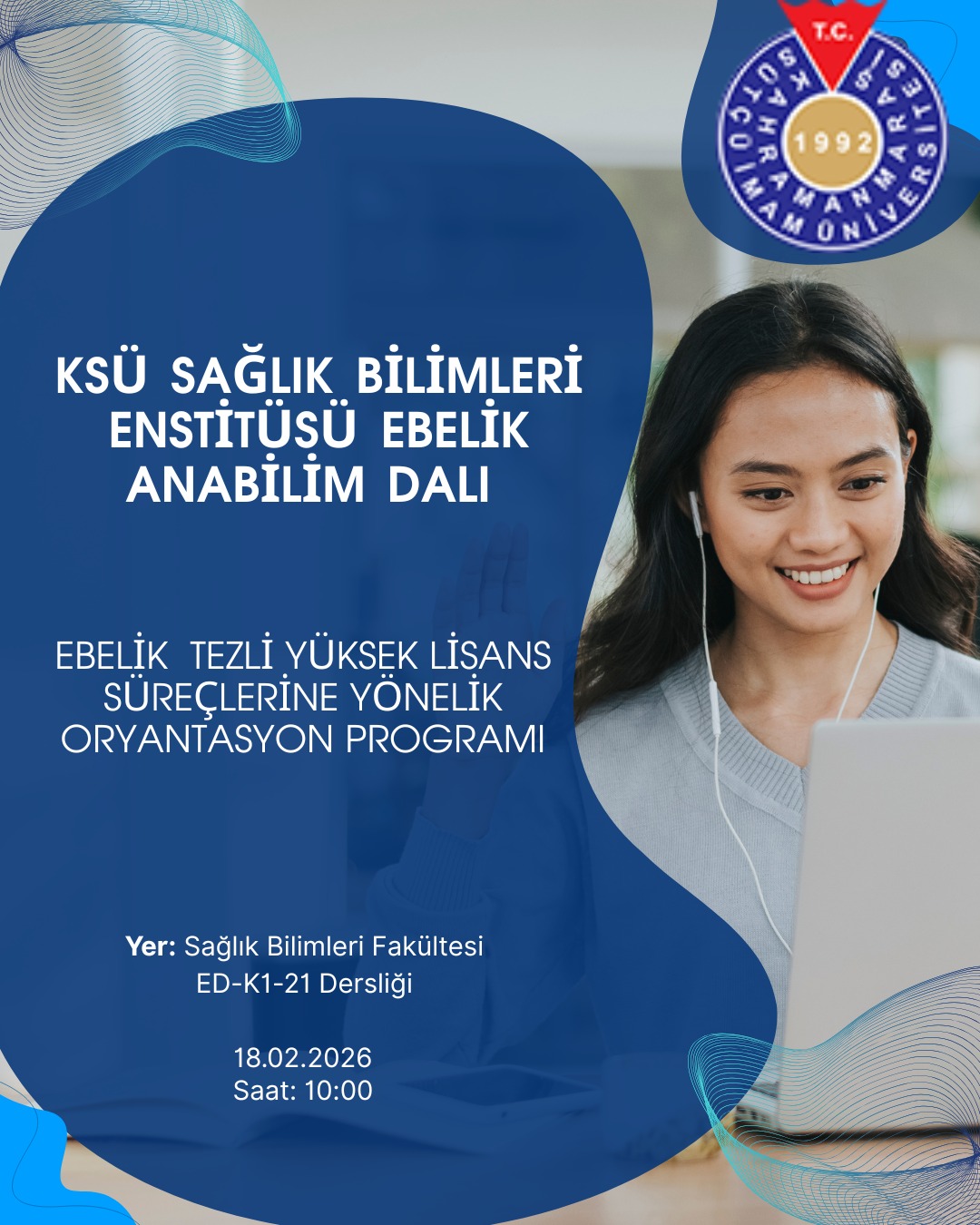 18.02.2026 tarihinde saat 10:00’da Sağlık Bilimleri Fakültesi ED-K1-21 dersliğinde Ebelik Yüksek Lisans Programı Oryantasyon Eğitimi düzenlenecektir.